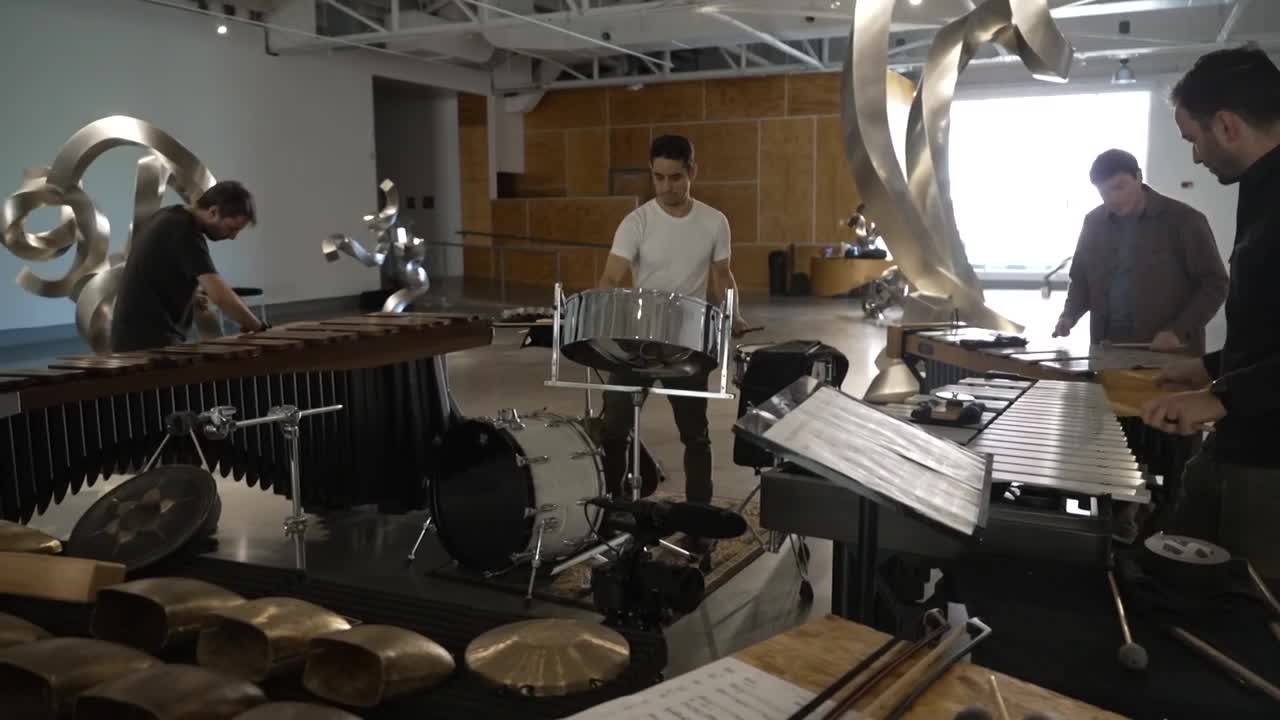 Victor Caccese, a member of Sandbox Percussion, explained the unique sounds they're creating during the residency.