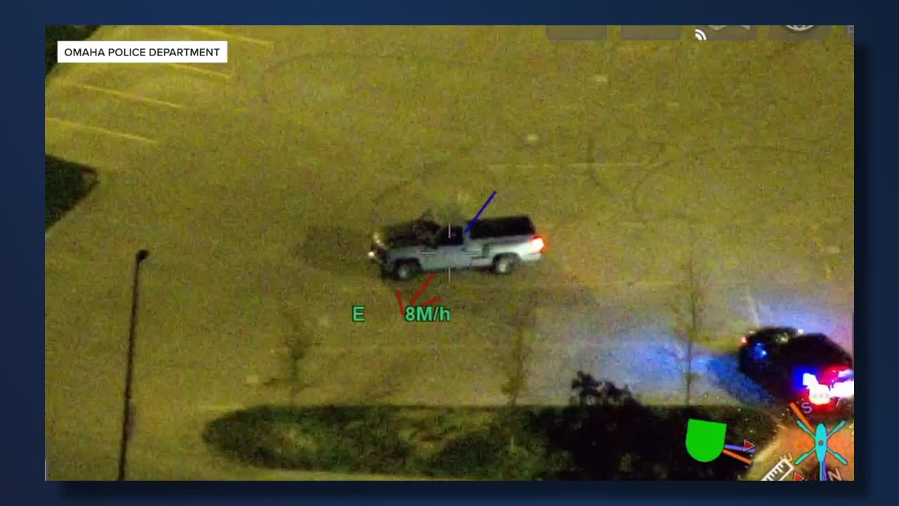- Video shows Able-1 footage from the Omaha Police Department and drone video from the Douglas County Sheriff's Office.