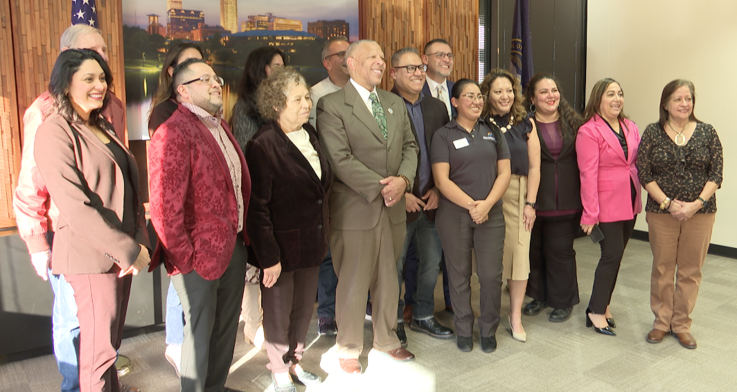 Omaha Mayor John Ewing Jr. kicked off the city's "Year of the Neighbor" initiative by presenting the first monthly recognition award to Jose Flores Jr., president of South Omaha Neighborhood Alliance (SONA).