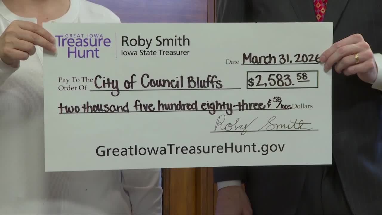 COUNCIL BLUFFS, Iowa (KMTV) — State Treasurer Roby Smith visited Council Bluffs to present the city with a $2,500 check and remind Iowans they might have unclaimed money waiting for them.