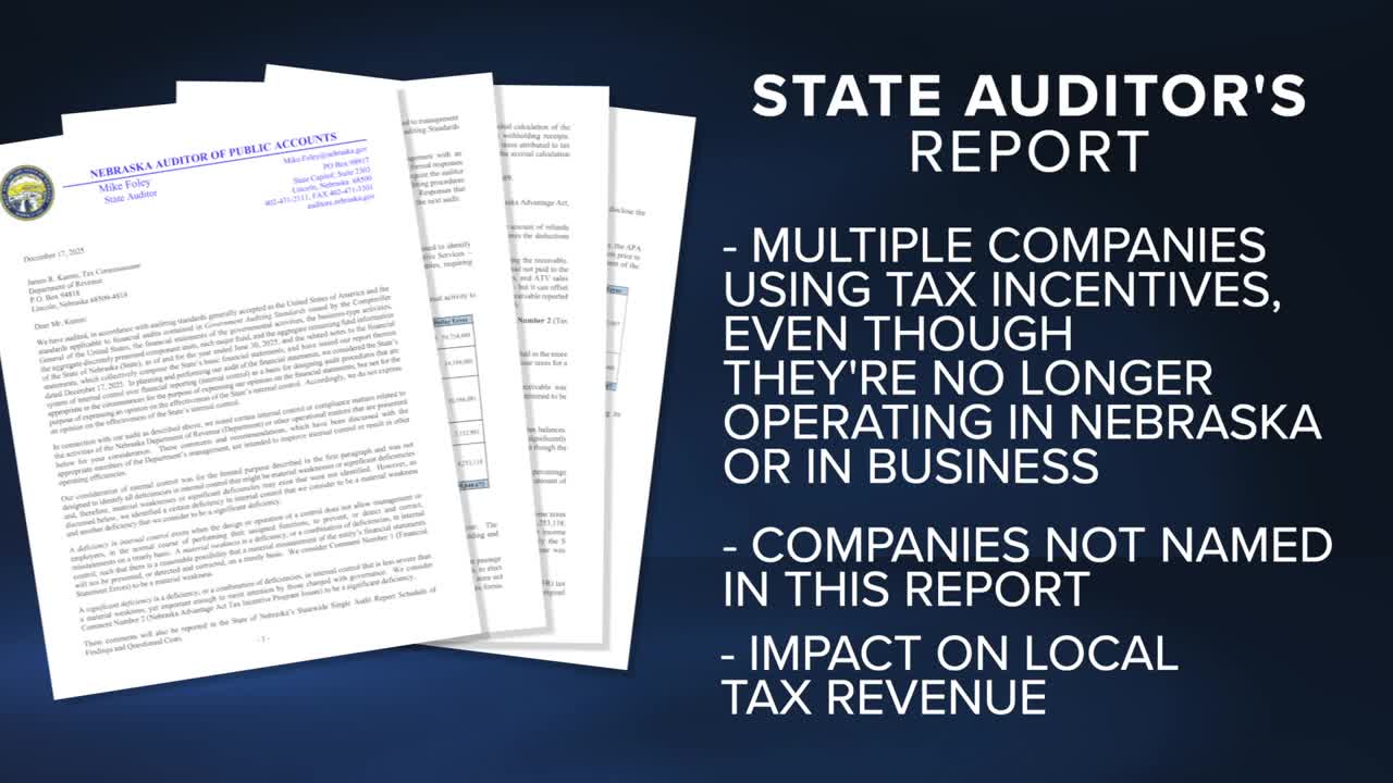 LINCOLN — OMAHA, Neb. (KMTV) — A new report indicates your taxpayer dollars could be going to businesses that aren't even operating in Nebraska. The report from State Auditor Mike Foley finds millions of dollars going to tax incentives for companies that either have no employees in Nebraska or no employees at all.