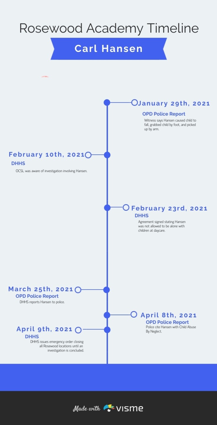 OMAHA, Neb — A former Rosewood Academy employee says she reported concerns she had about her employer Carl Hansen to Child Protective Services. She is furious over how long it took for the state to contact police, she told 3 News Now Investigator Courtney Johns.