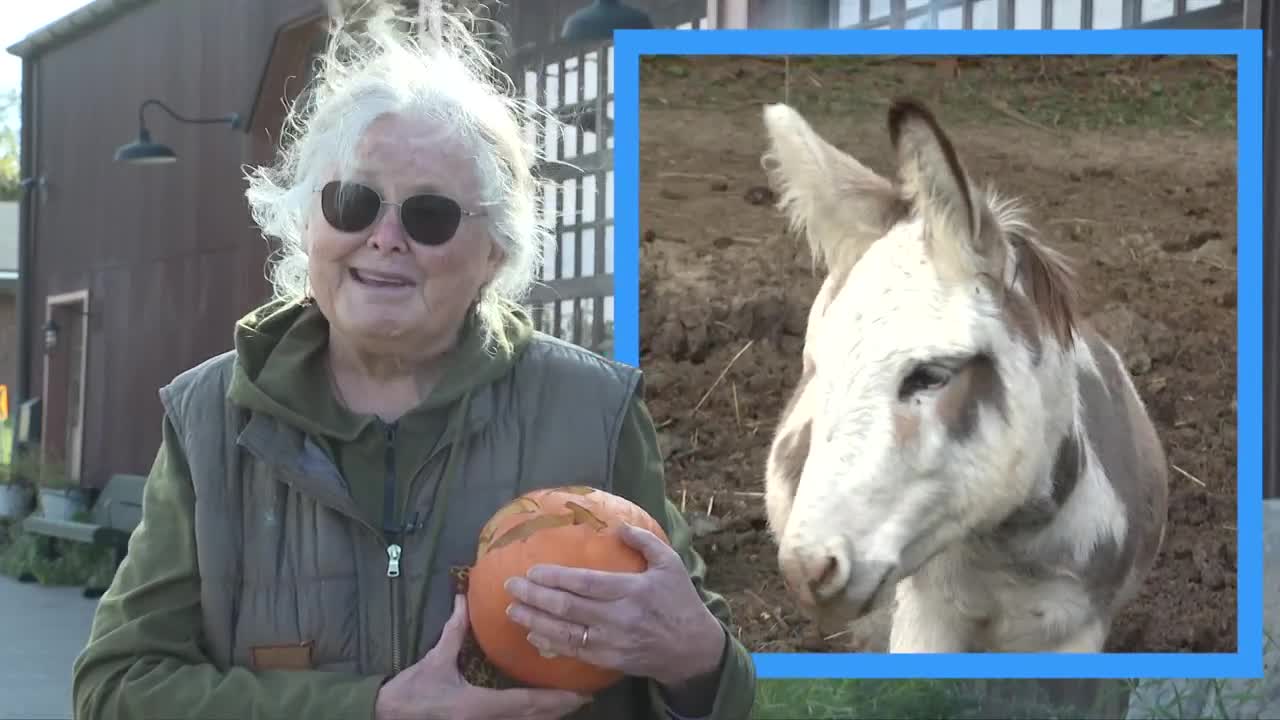 "She told me the miniature donkey is very bossy and will actually push the cows off because he wants the pumpkins for himself," Meigs said.