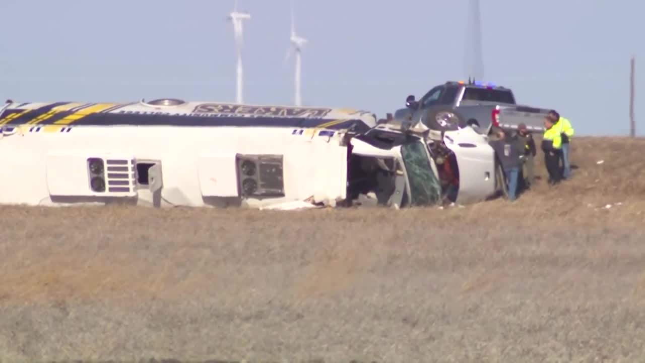 The crash occurred just before noon about 45 minutes north of Carroll. All 33 people on board were members of the college's baseball team, and the bus was the only vehicle involved in the incident.