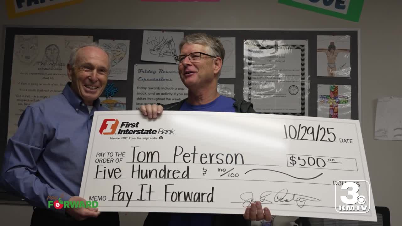 OMAHA, Neb. (KMTV) — Congratulations to Tom Peterson, Omaha teacher who received a $500.00 check from our 3 News Now Pay It Forward Campaign with First Interstate Bank.