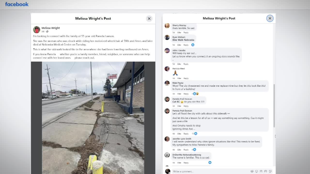 Now, the crash that took her life near 60th and Ames just before midnight on December 11 is sparking renewed questions about the condition of sidewalks in North Omaha.