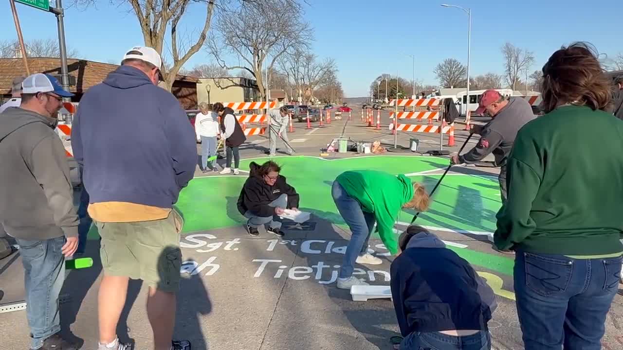 BELLEVUE,Neb. (KMTV) —The Bellevue Community Foundation and the city dedicated this year's giant shamrock painting to Sgt. 1st Class Noah Tietjens.