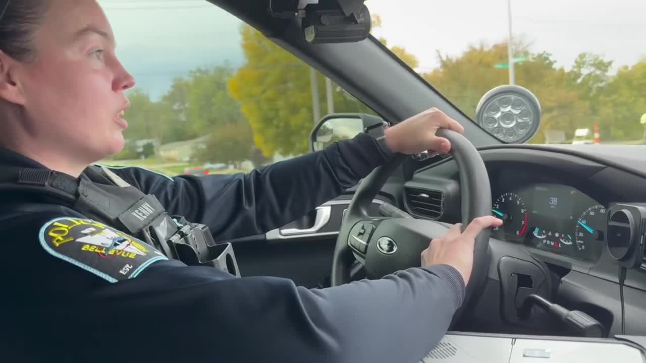 BELLEVUE, Neb. (KMTV) – Officer Crystal Kenny has been posting videos on social media showing red light runners and speeders throughout Bellevue, using a pointer to call out what drivers did wrong.