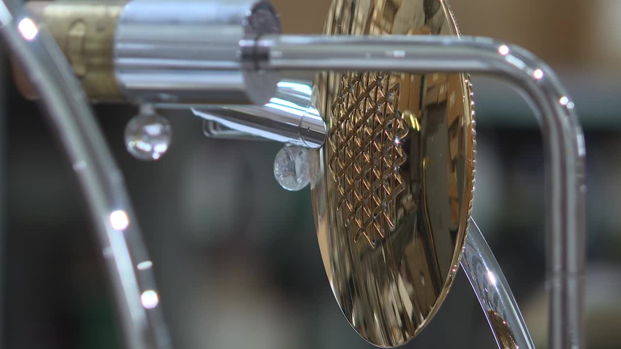 In making luminaires, the team often starts with solid metal like nickel and uses computerized milling.
