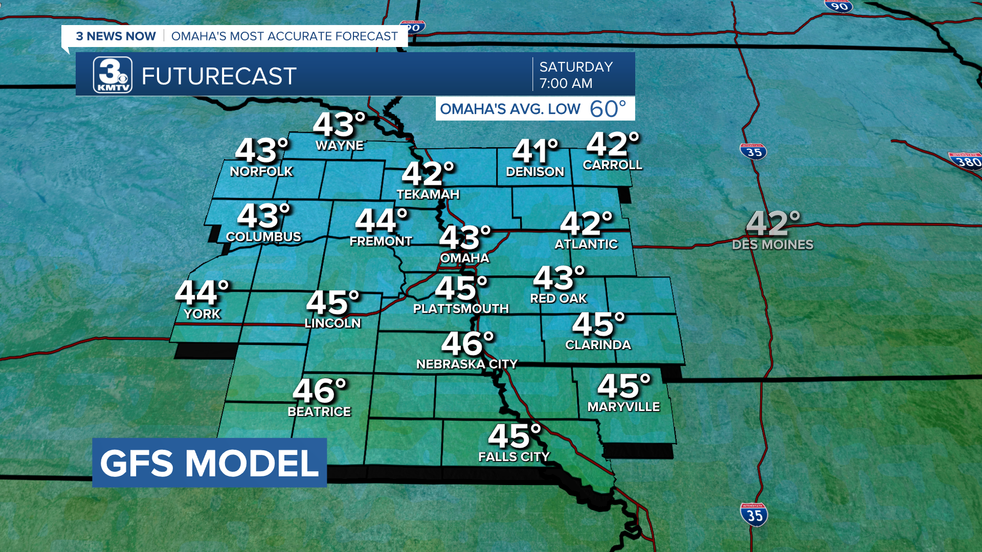 Near record lows tonight, 10-15 degrees below average Saturday and Sunday