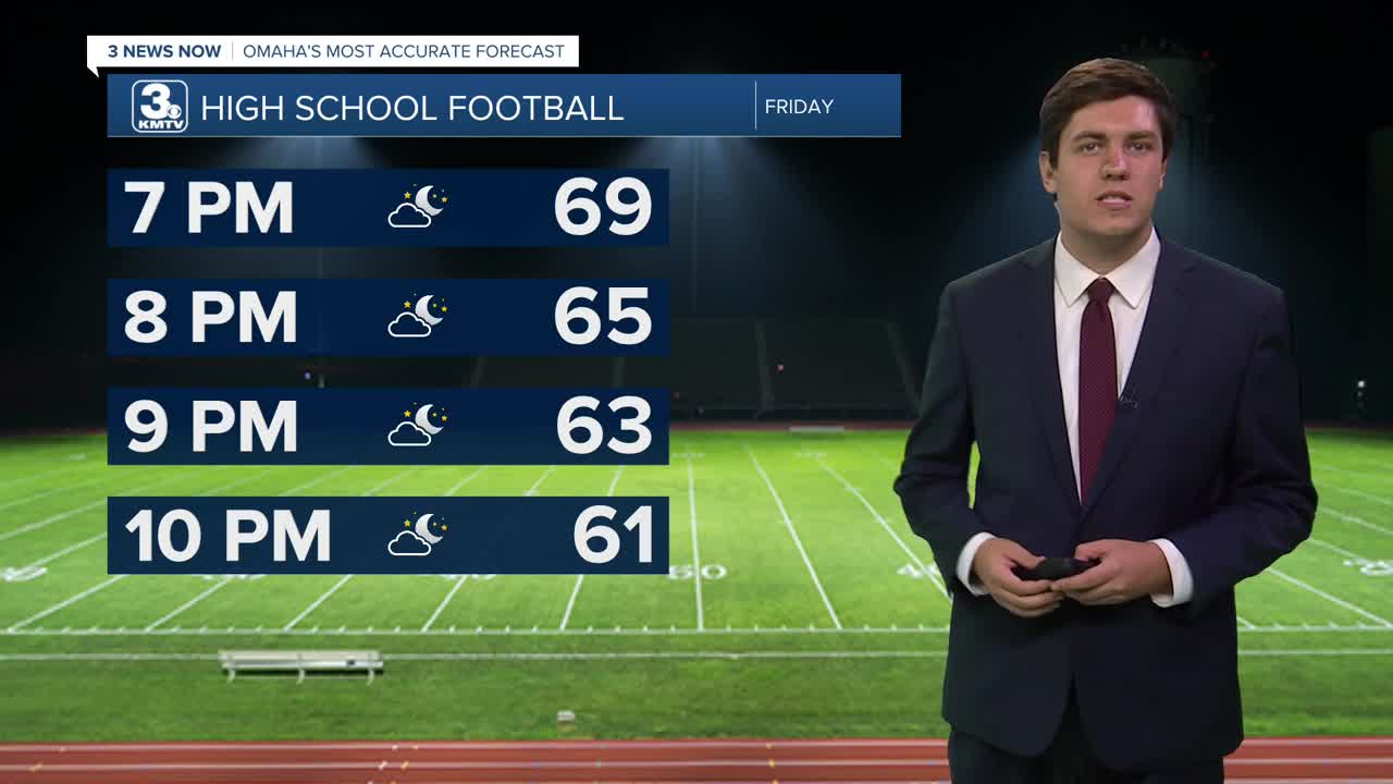 Clouds will be on the increase this evening. High school football games will kick off around 70 degrees and end in the low 60s. It gets chilly tonight under cloudy skies. We start Saturday morning in the low 50s.