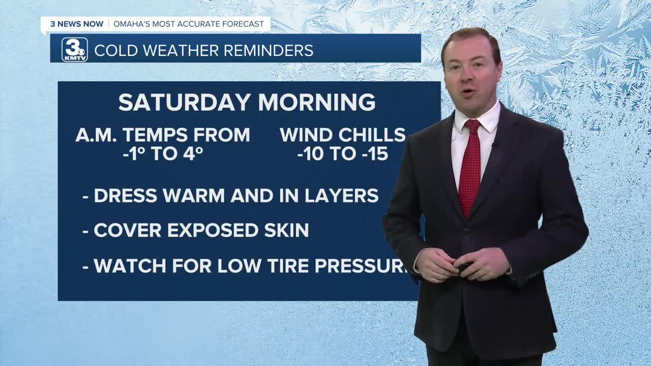 Expect it to be a frigid night around Omaha as temperatures drop to near zero degrees, with wind chills reaching ten degrees below zero in some areas Saturday morning.