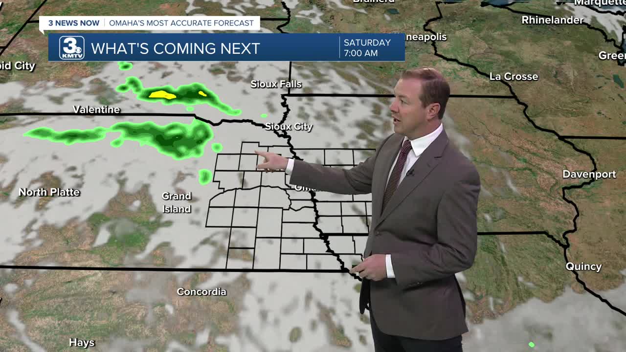Saturday starts out cloudy and there could be a couple pockets of drizzle in northeast Nebraska. Most, if not all, will stay dry. The afternoon brings a mix of sun and clouds with mid 70s for the afternoon.