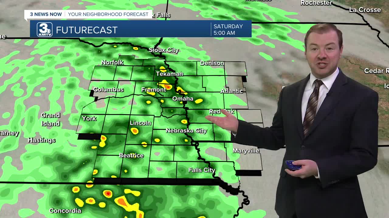 A warm front will reach Omaha late in the day, quickly rising temps into the 60s with a small chance at storms late in the day and in the evening. These Saturday evening storms may have large hail.