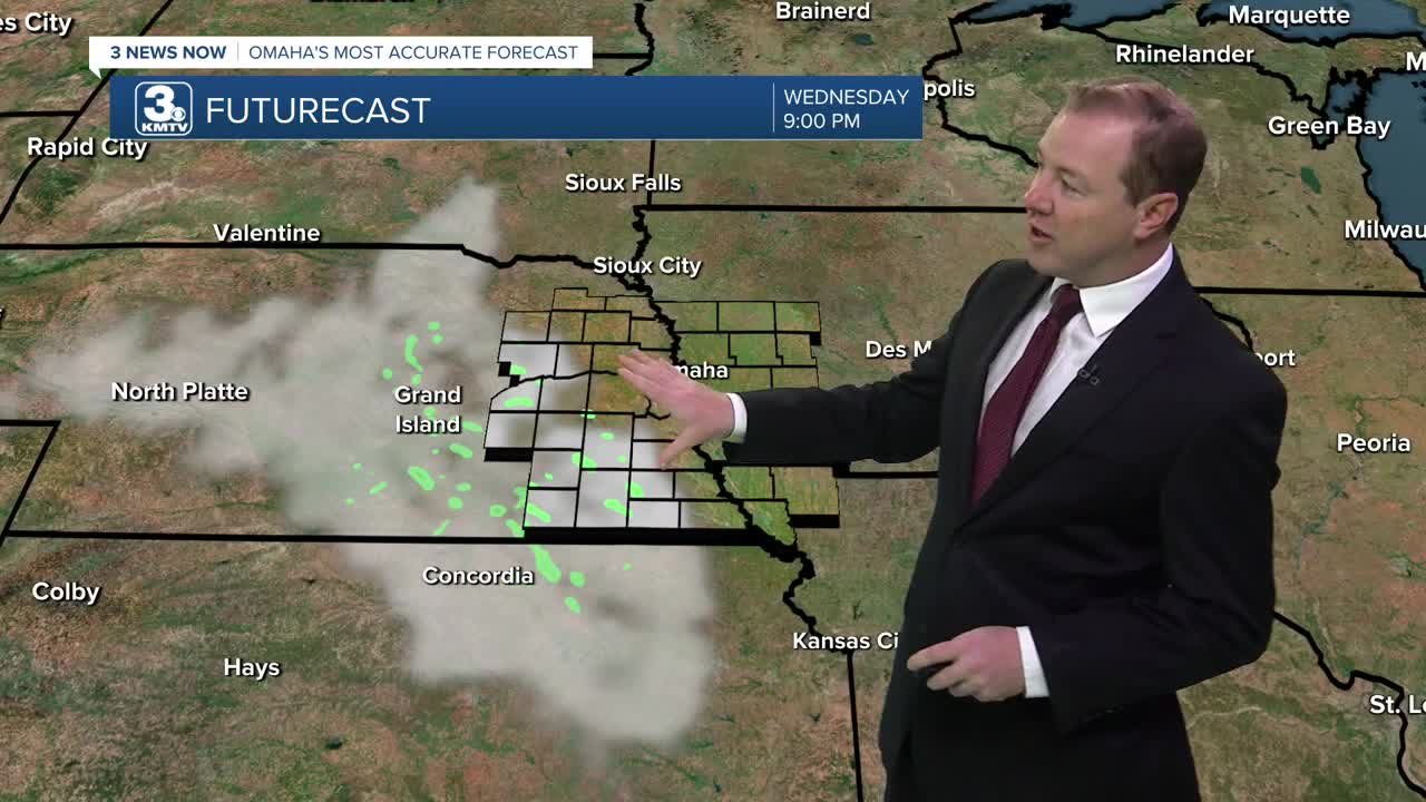 Late Thursday night, a few spotty showers will develop across southwest Iowa and far southeast Nebraska, staying mostly south of Omaha. This rain will exit the region before the start of Friday morning.