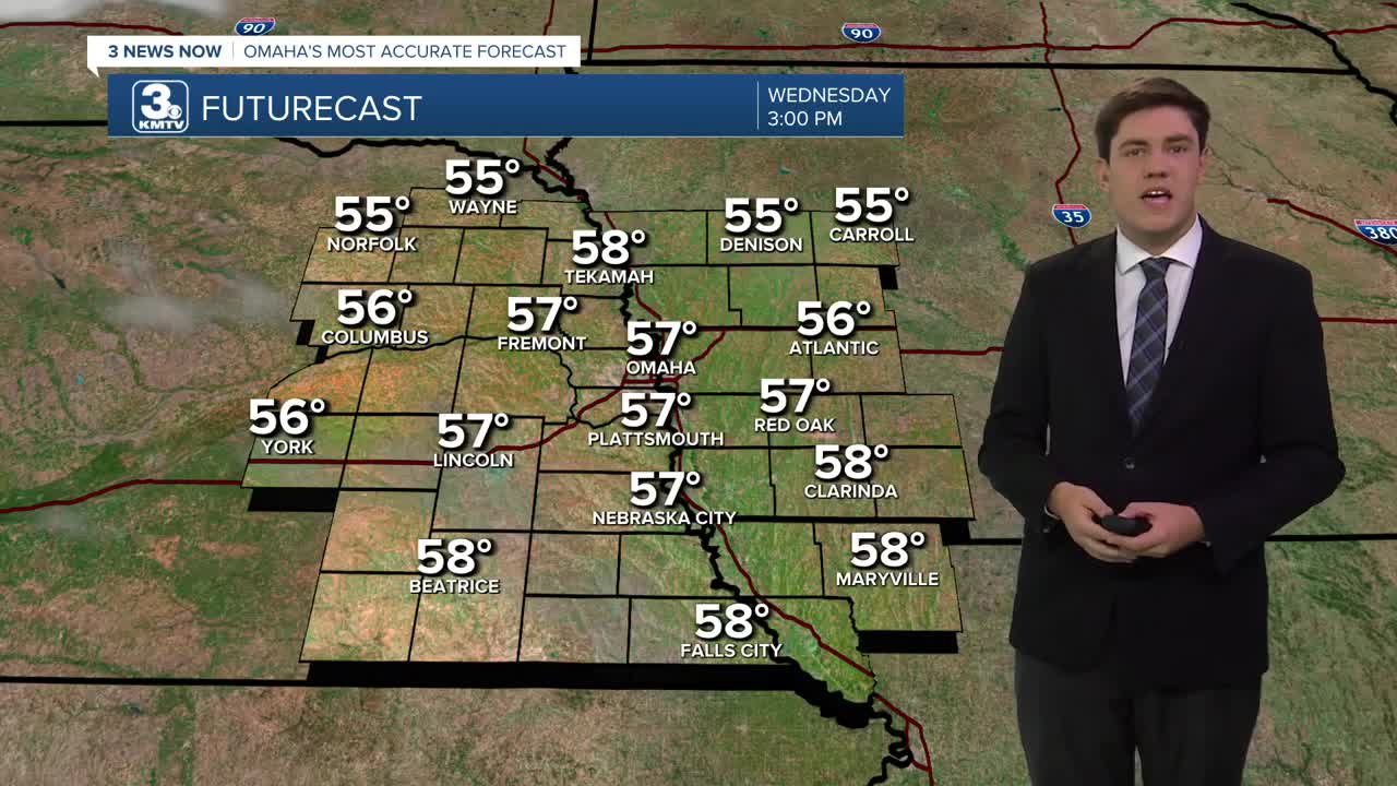 It will be about 10 degrees cooler & breezy on Wednesday, but we will get more sunshine. Highs will be in the upper 50s to near 60 degrees.