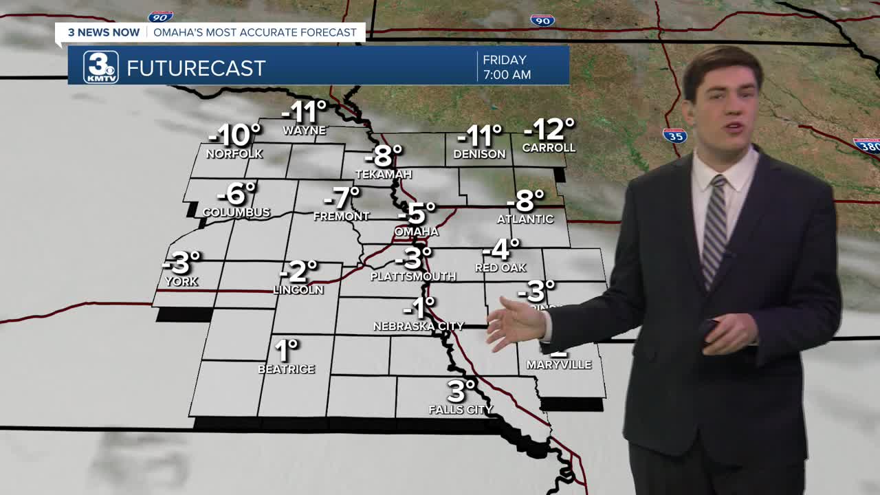 Temperatures will dip below zero Friday morning, with wind chills around -30 to -20. The wind will not be overly strong, it's just THAT COLD! You could get frostbite in as little as 30 minutes in this kind of air, so limit skin to outdoor exposure. Bring pets inside, and check on our more vulnerable neighbors.