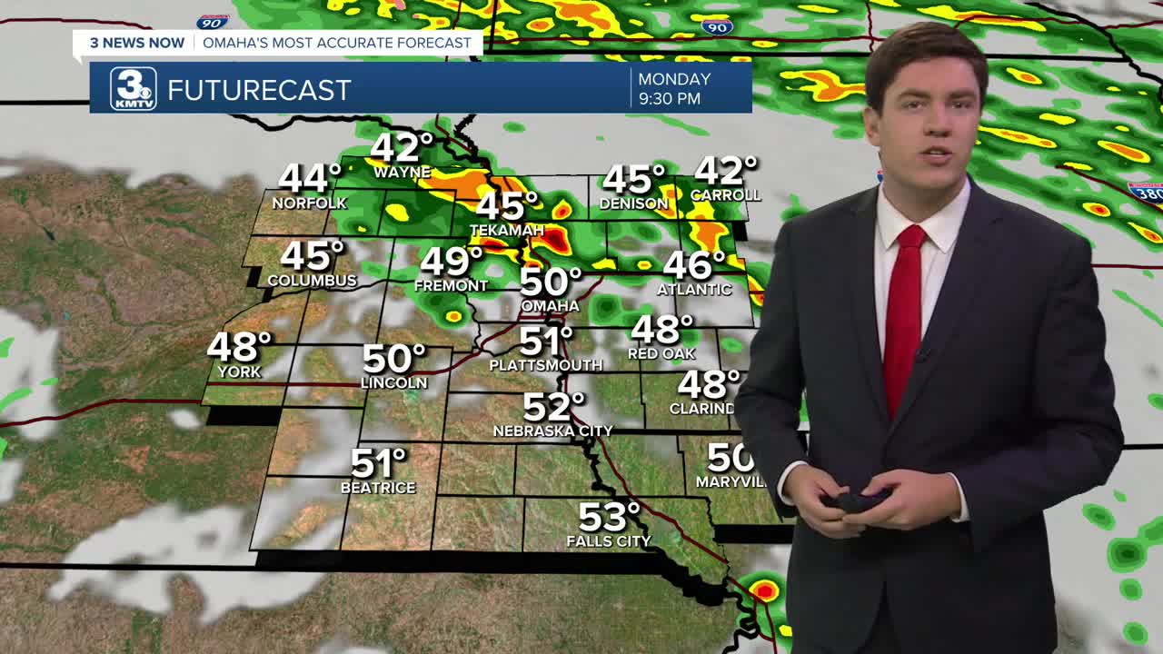 Though some sprinkles have been around all day, the best chance of rain will be this evening after 7 pm. Not everyone will see rain, with neighborhoods in Omaha and to the northeast having the best shot at rain. A shower or two may be around Tuesday morning, but it should be out quickly.
