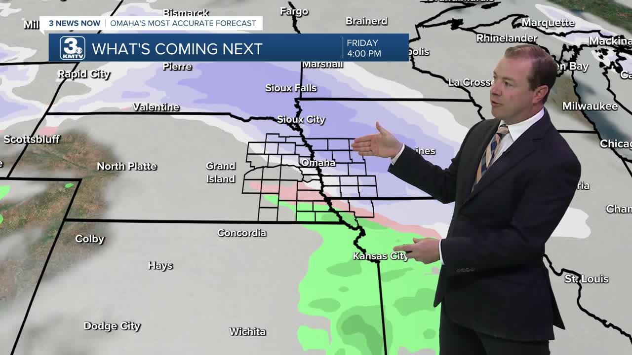 For now, expect small snow accumulations (up to 1") around and north of Omaha (into western Iowa), and more of a mix of freezing rain and snow south of Omaha (into southeast Nebraska/northwest Missouri), which could leading to icy roads.
