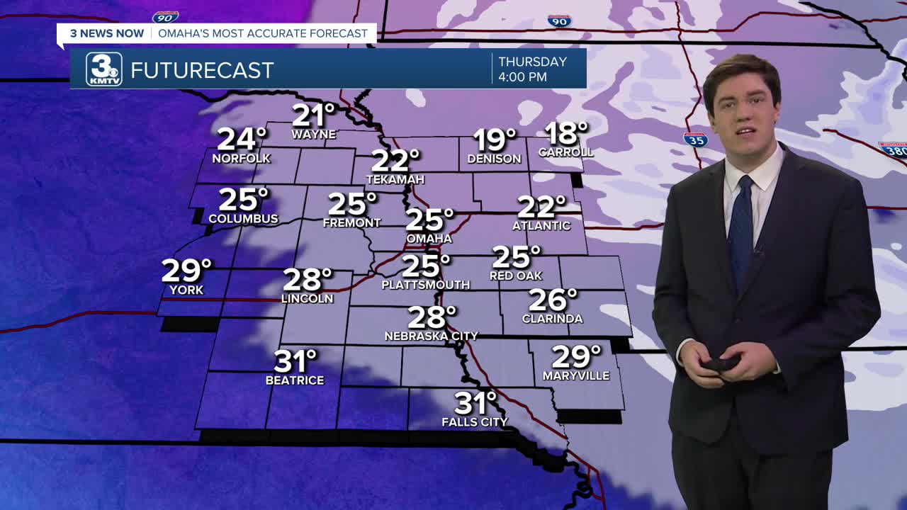 The cold front also drops temperatures on Thursday. It is a "falling high" day, with our warmest air being in the morning (upper 30s), and dropping through the afternoon (upper 20s). We bottom out overnight in the 10s.