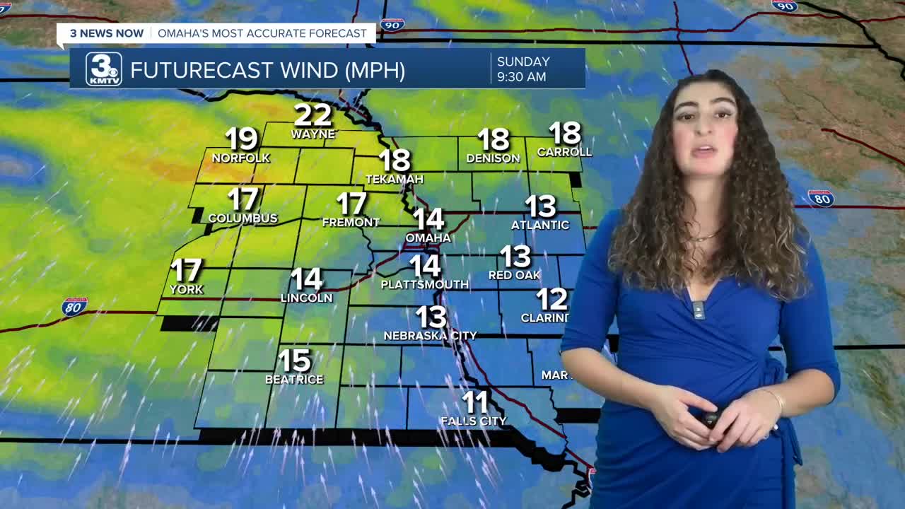 Sunday will be partly to mostly sunny, again reaching the mid 40s. It will be a bit breezy too, which may lead to an elevated fire risk over eastern Nebraska.