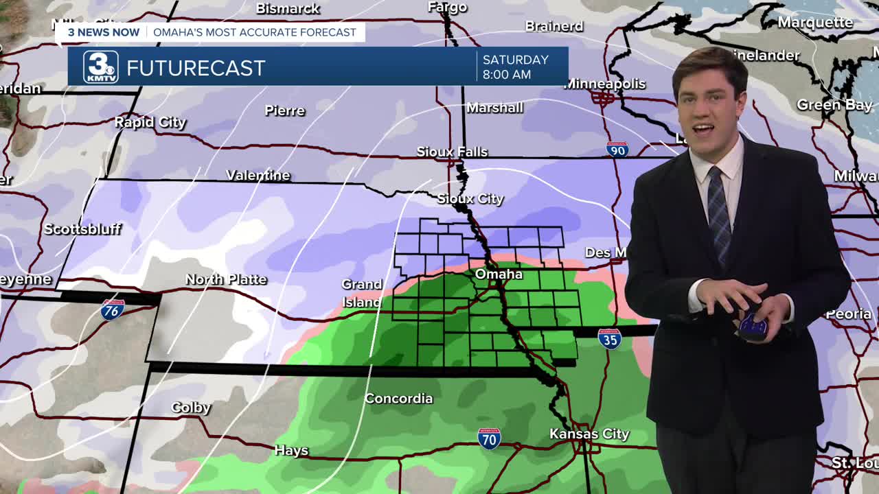 It will get cold by Sunday, as temperatures drop in the low 20s for Sunday and Monday afternoon. Temperatures at night will dip to near or below 10 degrees. There is another chance at light snow south of Omaha on Monday, but at this time, this looks to not be as impactful as the weekend.