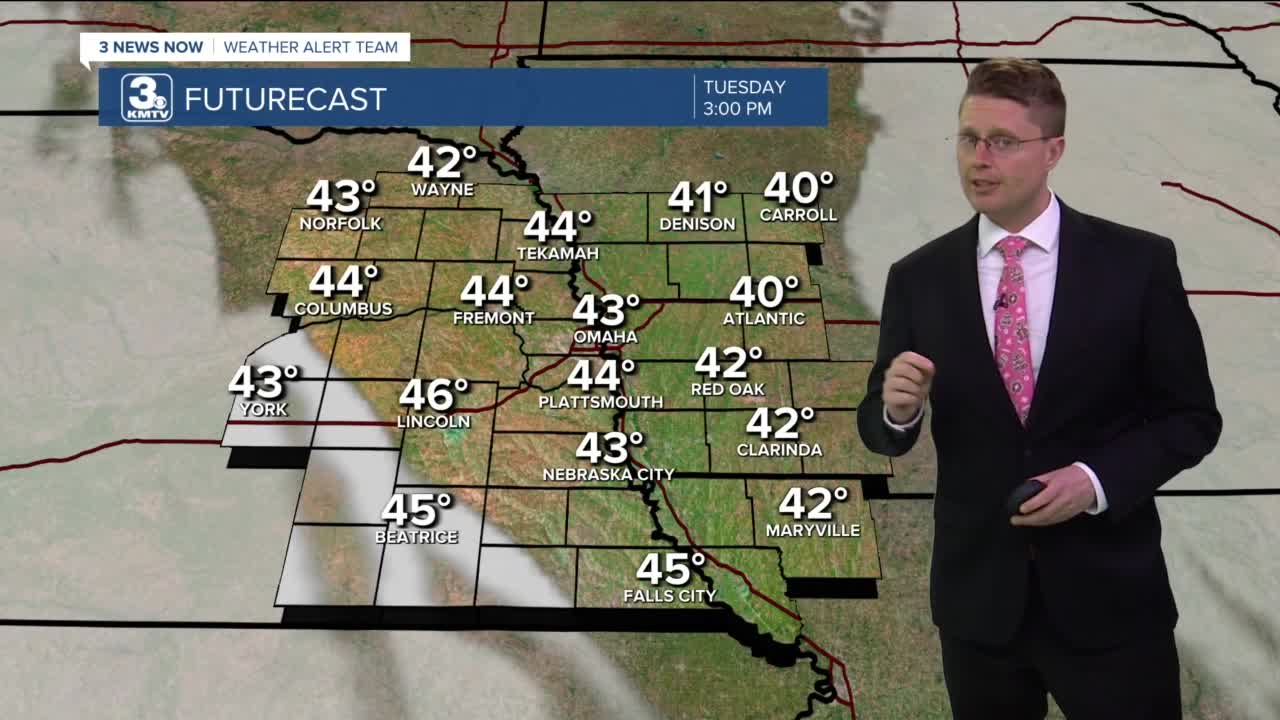 We're still mostly cloudy today, but we start to warm up! Highs will be in the mid 40s in Omaha. Cities northeast of Omaha will run a few degrees cooler, and a few spots in southeast Nebraska could make it into the low 50s.