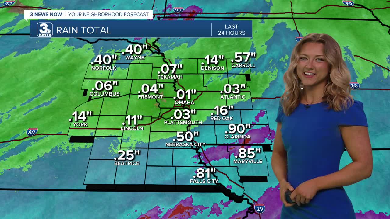 There is a small chance for some lingering rainfall this Monday afternoon, but for the most part Omaha will dry out. Temps will fall back however as we head into the evening, with some northerly winds ushering in cooler air.