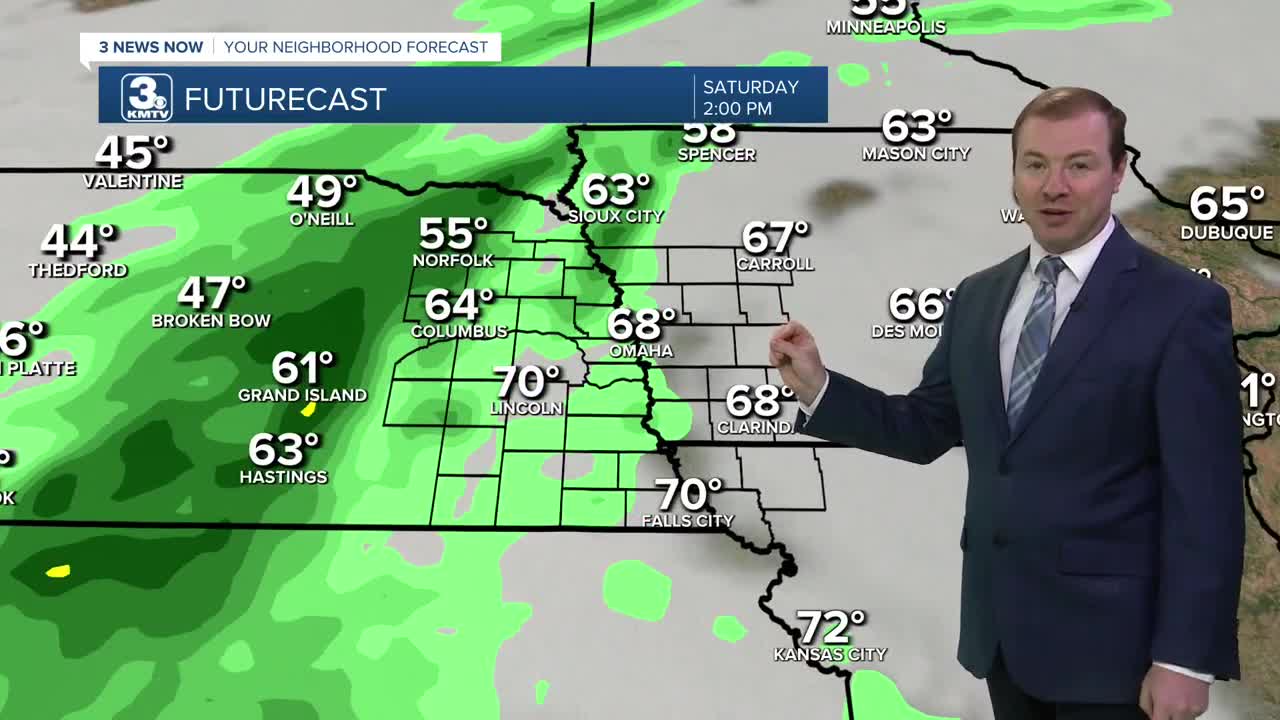 There may be more chances at rain over the weekend. Saturday starts mostly dry with only a few spotty showers near Columbus, followed by afternoon clouds and highs near 70. Rain showers will move in from the west of Omaha later in the afternoon and heading into Saturday evening. Plan for there to be some rain in town for any of your outdoor evening plans.