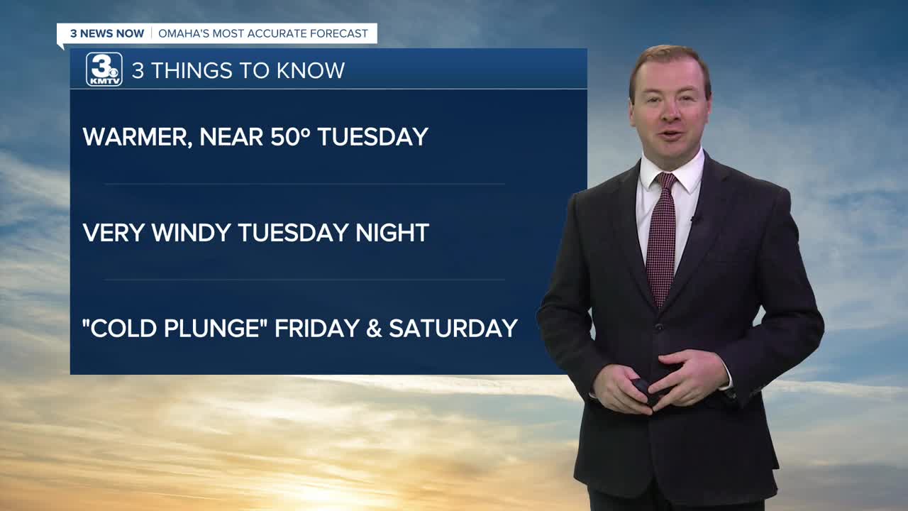 Tuesday will be the warmest day of the week with a mix of sun and clouds with highs in the upper 40s. A few neighborhoods in Nebraska may even reach 50 degrees if there is enough sunshine! There should be a lot of snow melting Tuesday.