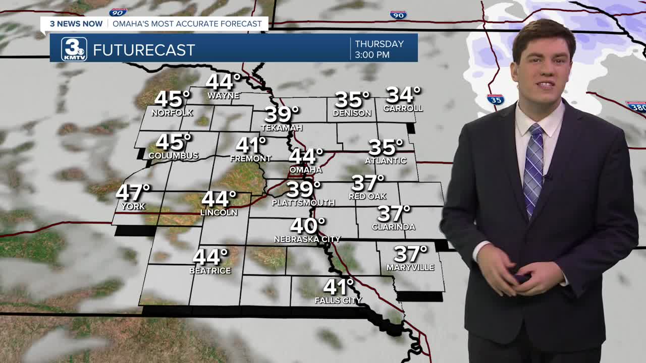 It's not as cold or windy as it was yesterday. Highs this Thursday reach into the low 40s with a mostly cloudy sky. Though there still is a breeze, its lighter than yesterday or tomorrow.