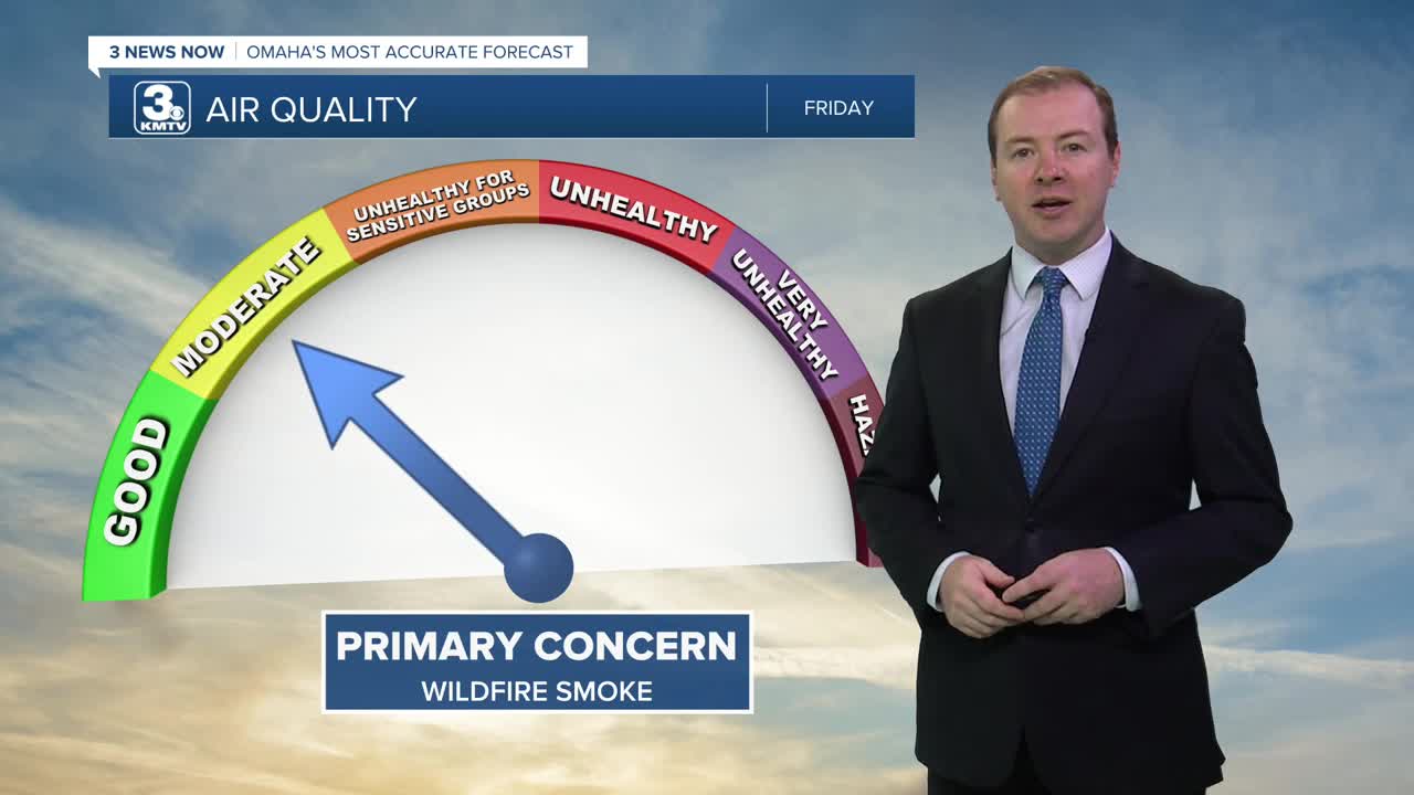 Another cold front moves in Thursday night. This one will bring some hit and miss storms, arriving from the north, mainly after 8pm. A lot of this rain will stay mainly stay in our western Iowa neighborhoods. This cold front will also clear out the wildfire smoke.