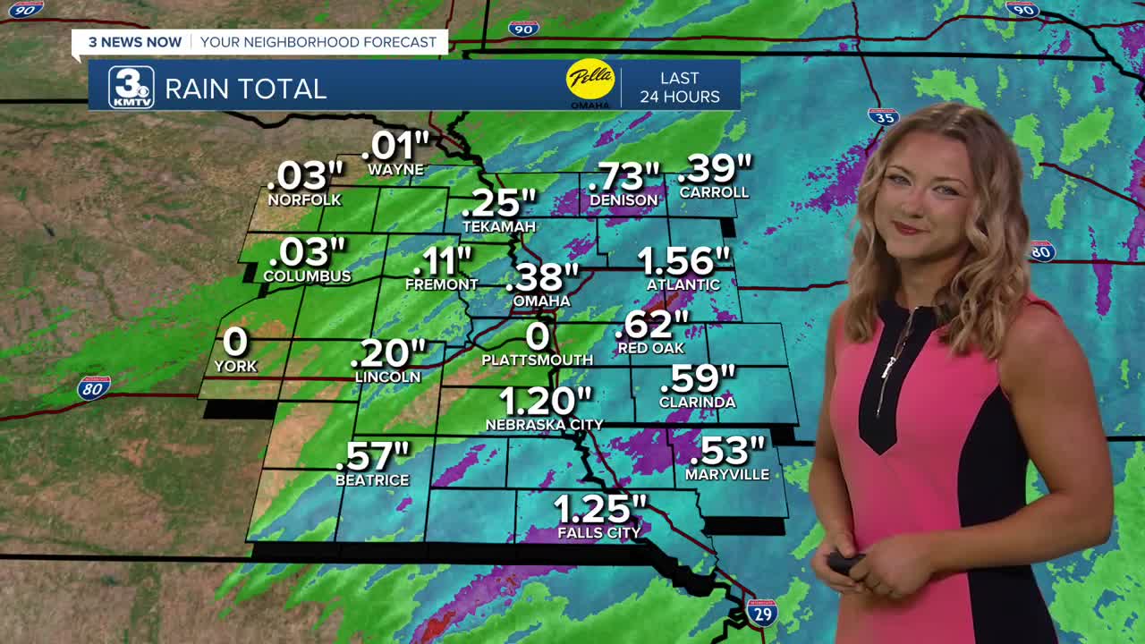 Sunday carries the more likely chance for rain and storms, with rain probabilities becoming likely be the afternoon and evening. A few stronger storms may be possible, mainly south of Omaha.