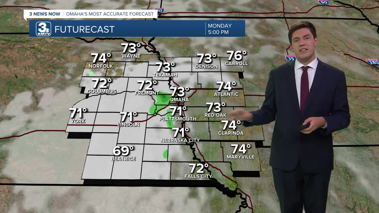 This afternoon is breezy, cloudy, and comfortable with highs in the lower 70s. While there may be an isolated evening rain shower, most of us will be dry for the evening.