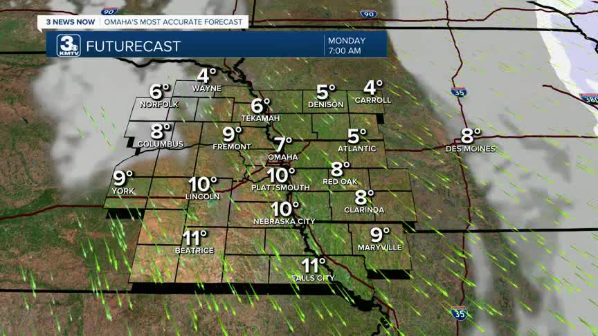 - Strong winds and bitter cold for Monday morning