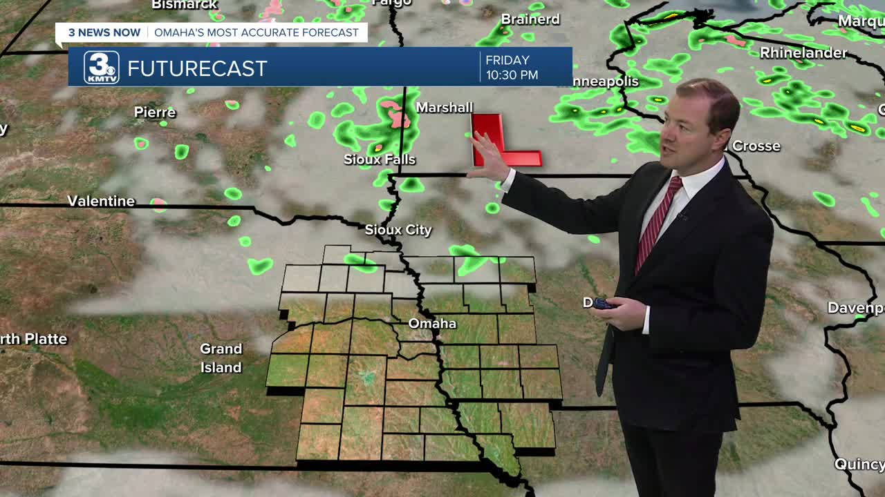 Sunday will be warmer and sunny, with highs in the upper 50s. if you are south of Omaha, you may be near 60!