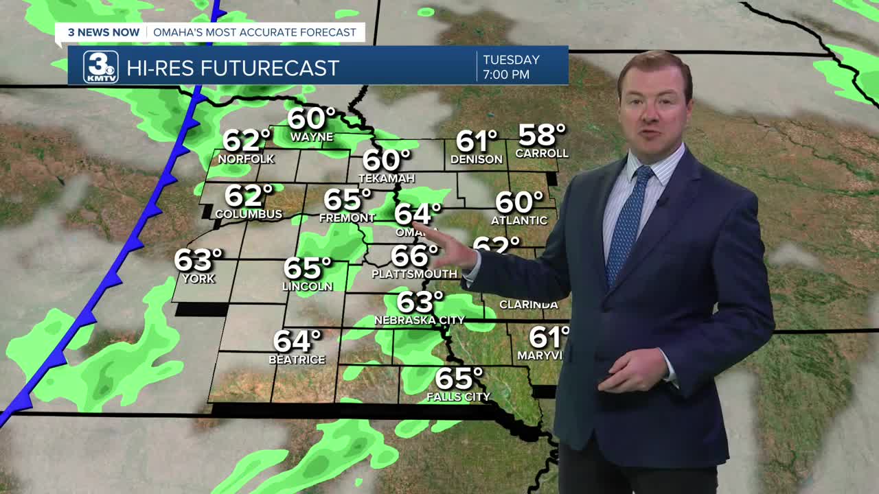 As we head into a breezy, mild Tuesday evening, a few isolated thundershowers will move in from the west. Severe weather appears low this evening, but some gusty winds could be possible in the pockets of rain until 11pm. Rainfall amounts will be around0.05" or less.