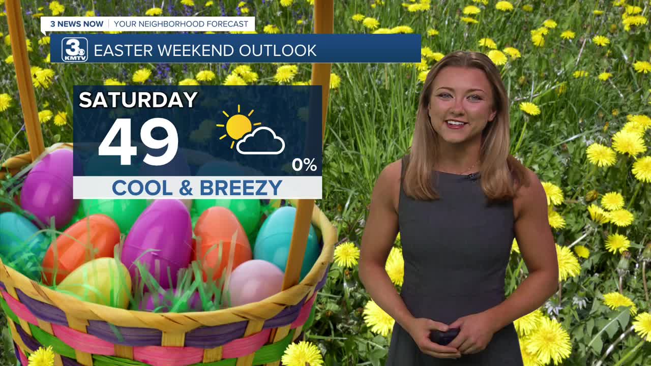 For your Easter Sunday plans, expect a cold morning in the upper 20s, followed by temps in the mid 50s with sunshine and calmer winds in the afternoon.