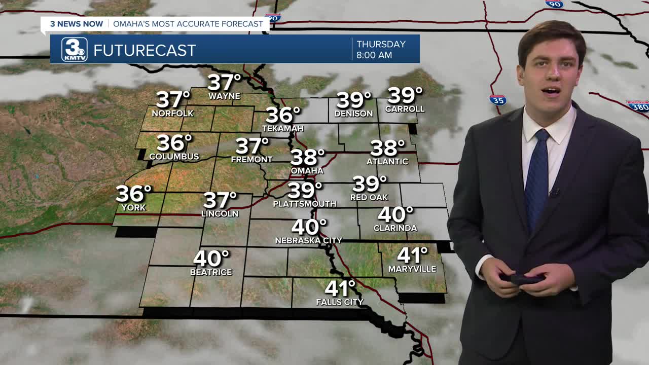 We get a glancing blow from the low-pressure system, sending rain into neighborhoods south of I-80. A few showers may get as far north as Omaha, but the city should remain dry for the most part. Highs will be in the low 50s.