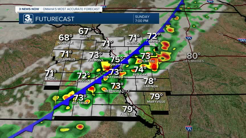 As the cold front passes through tonight, it will spark off showers & storms by the evening (after 7 pm) along and south of I-80. Severe weather is not expected, but one or two storms may produce hail & gusty winds.