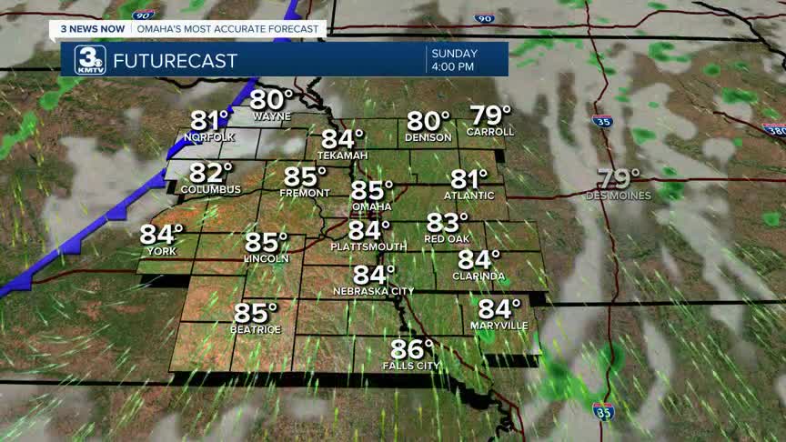 The sunshine has returned this afternoon on this comfortable Saturday, tempertures will be in the 60s this evening, so grab a jacket if you need to! Overnight, we drop down to near 60 as clouds move back in. A few showers are possible north of Omaha, but many will be dry.