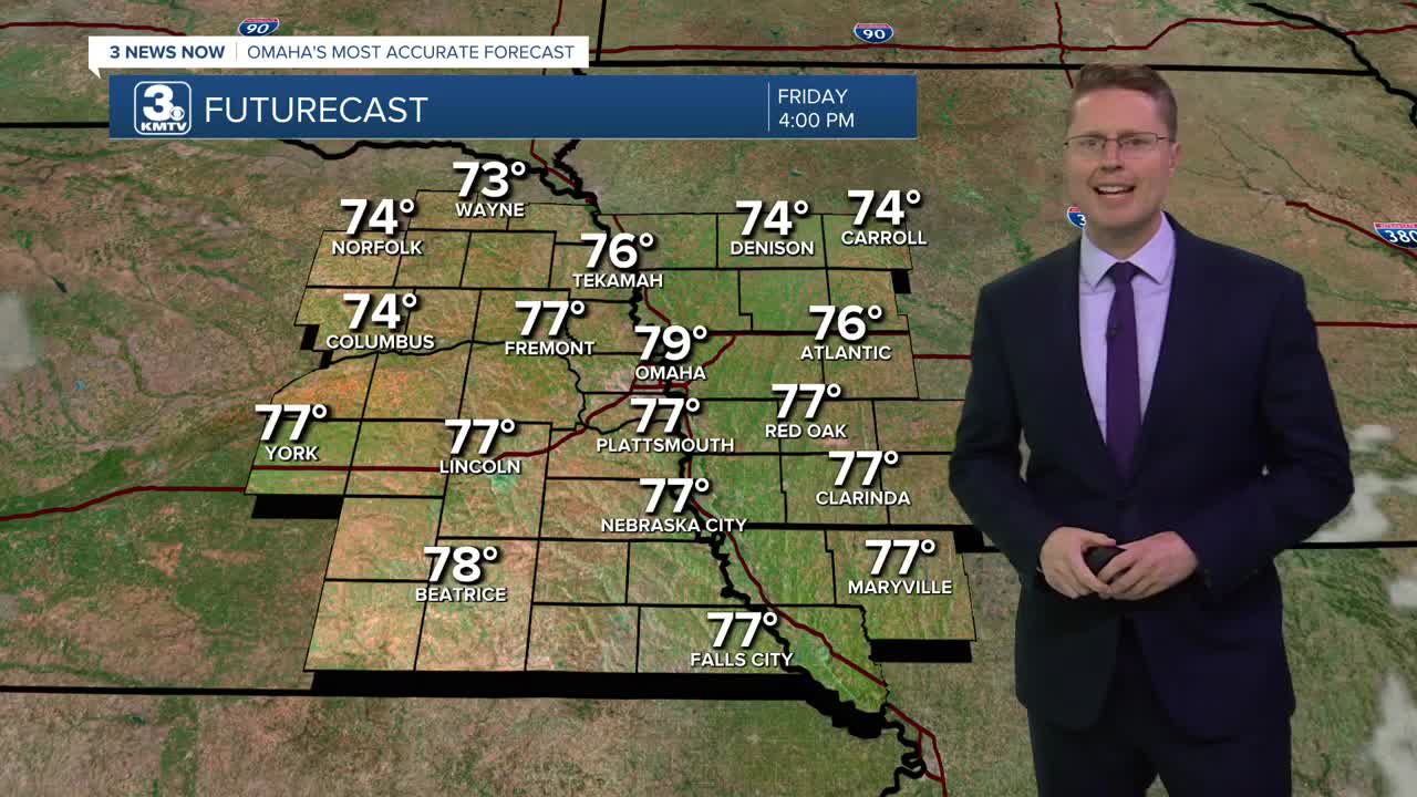 After midnight, a few spotty showers will pop up. There won't be many of them, so a lot of us stay dry, but neighborhoods southeast of Omaha have the best chance of seeing some of the overnight rain. Everyone will be dry by the Friday morning commute with upper 50s.