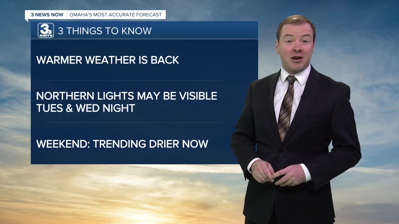 Our next chance for rain may come early next week as a windy storm system reaches Nebraska and Iowa. Monday will be cloudy with highs in the mid 40s.