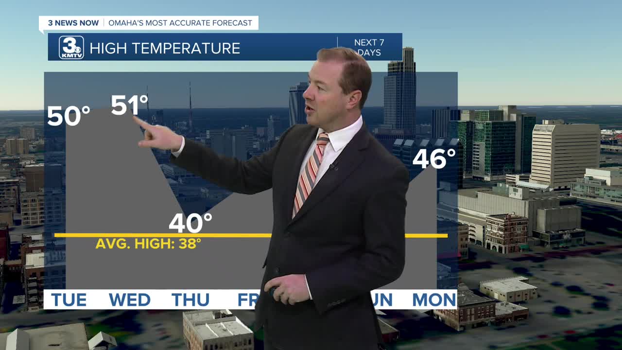 Tuesday will be even warmer with mostly sunny skies and highs near 50.