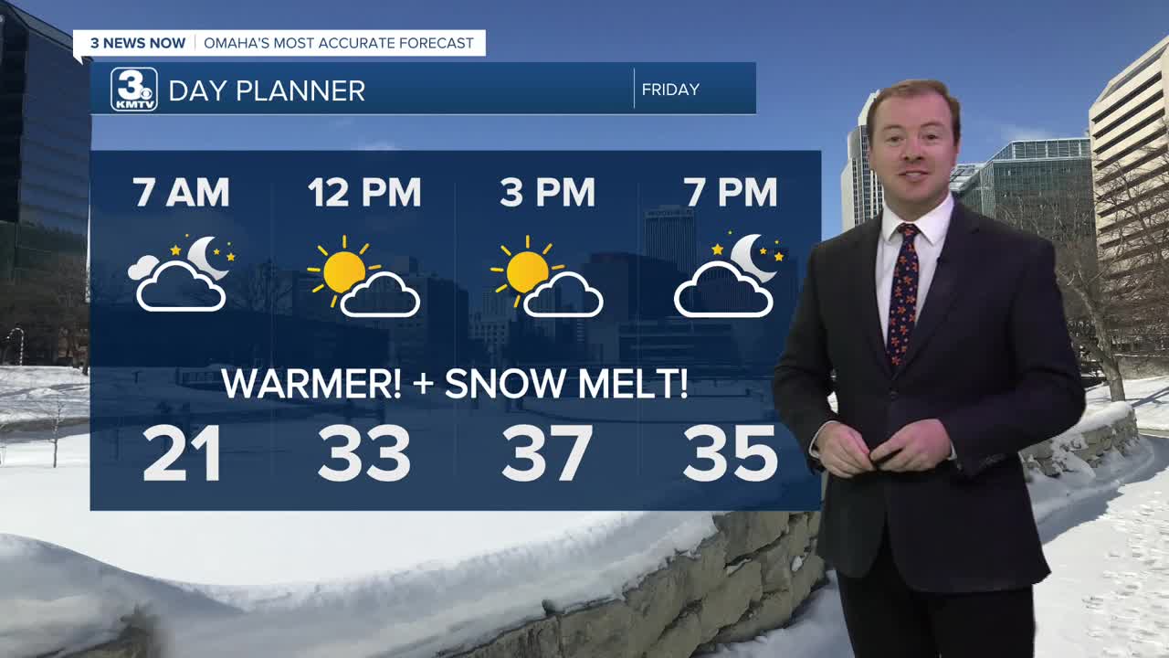 Friday will be a much warmer day, and we should see a lot of snowmelt around the region. It will be partly to mostly sunny with highs in the upper 30s. Neighborhoods around Lincoln may even reach the 40s!