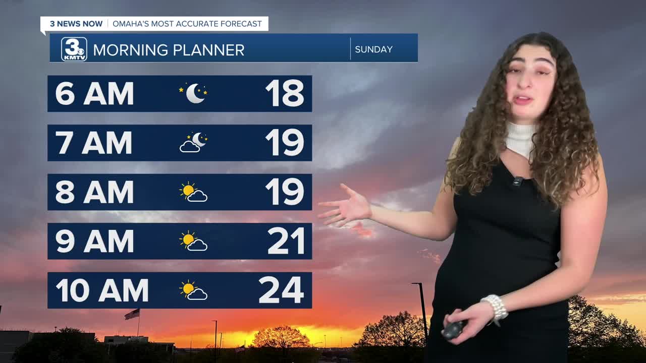 Skies will clear up Saturday night and we'll be in the 10s by Sunday morning. We're back into some sunshine on Sunday with highs in the mid-30s.