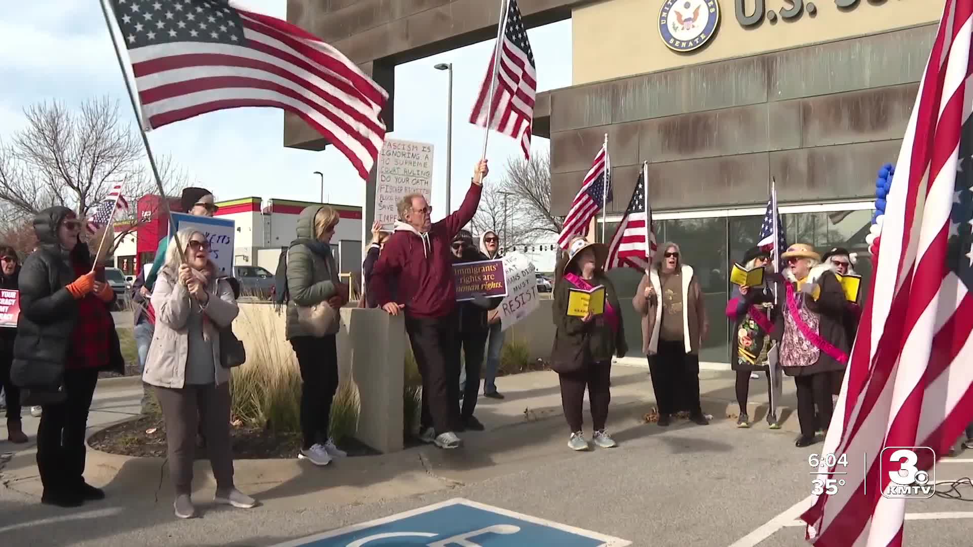 OMAHA, Neb. (KMTV) — Protesters gathered around Nebraska Senator Pete Ricketts' office in west Omaha on Monday to make their voices heard on healthcare.